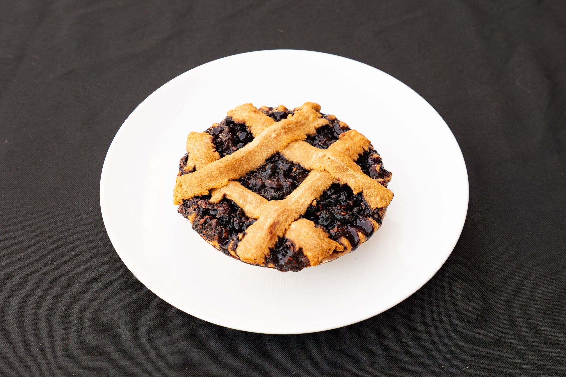 A handcrafted trifecta of blackberries, blueberries, and raspberries baked into our signature golden butter crust. Each slice delivers layers of sweet berry flavor balanced with a gentle raspberry tartness — a fresh-baked classic that tastes like home.
