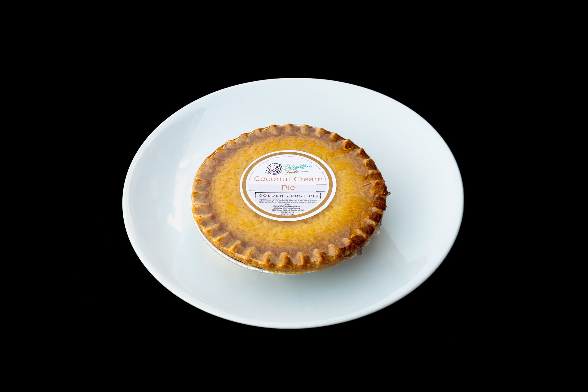 Our Coconut Cream Pie is made with real coconut flakes mixed into a smooth, creamy filling. As it bakes, the coconut rises to the top, forming a light, toasted layer that adds extra flavor and texture. Every bite is soft, sweet, and full of real coconut taste, all inside our golden butter crust.
