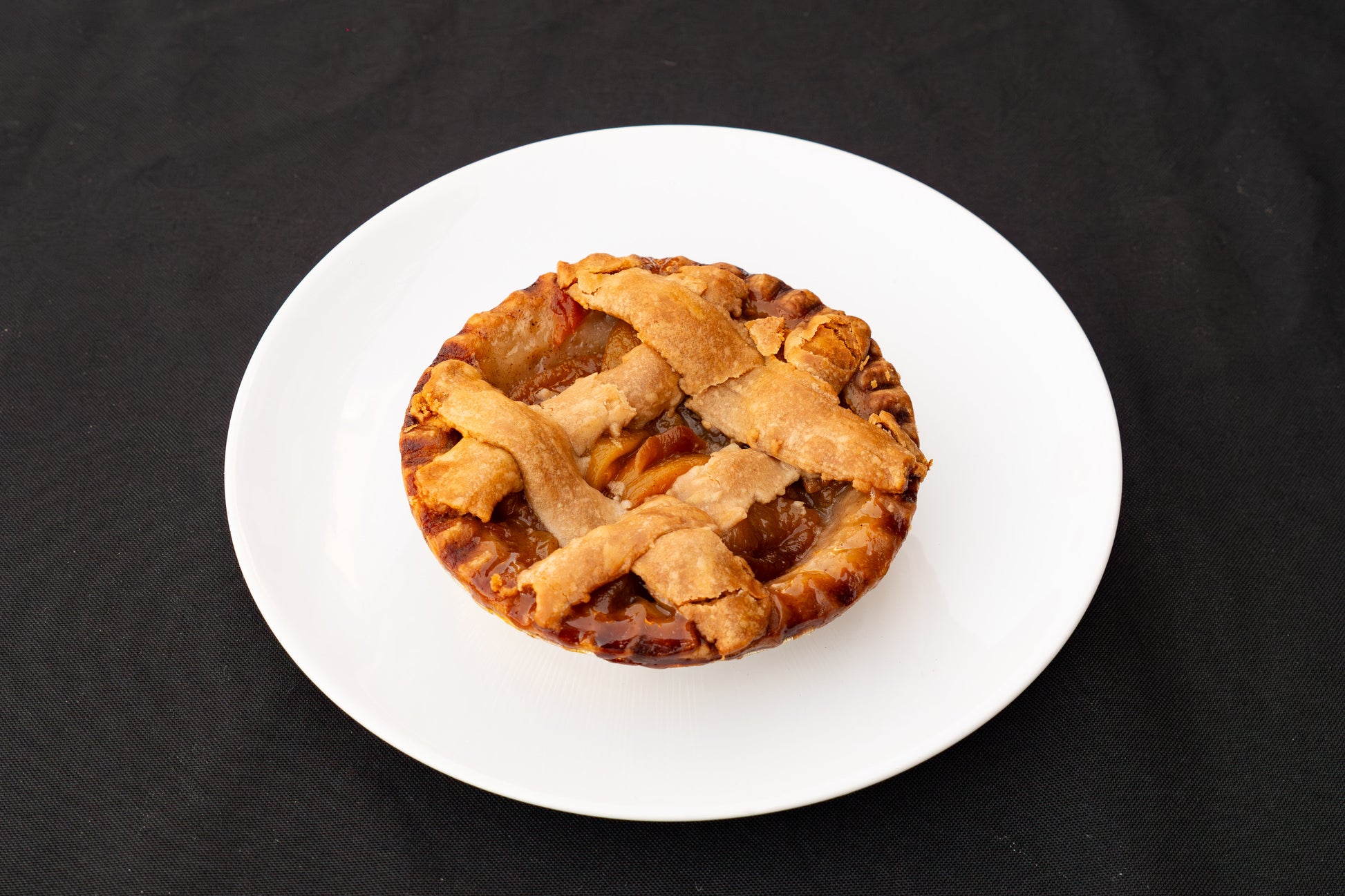 Made with the exact same recipe as our classic peach cobbler, this pie features juicy yellow cling peaches marinated in our signature butter-and-spice blend, then baked with a lattice crust on top and a golden, flaky crust on the bottom. The result is a warm, buttery, fruit-filled pie that delivers the comfort of cobbler in every slice.
